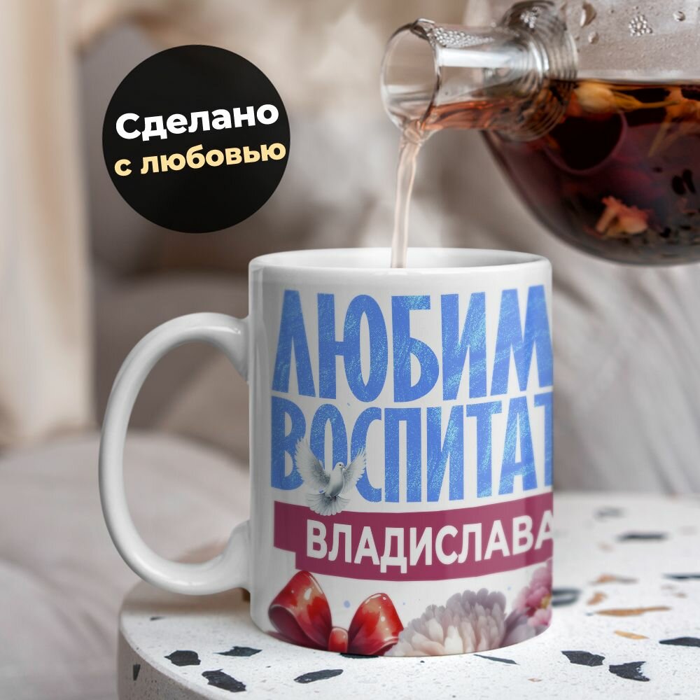 СохранитьКружка, "Владислава любимый воспитатель", на день воспитателя, в подарок в детский сад, работнику яслей или коллеги 330 мл интересное: