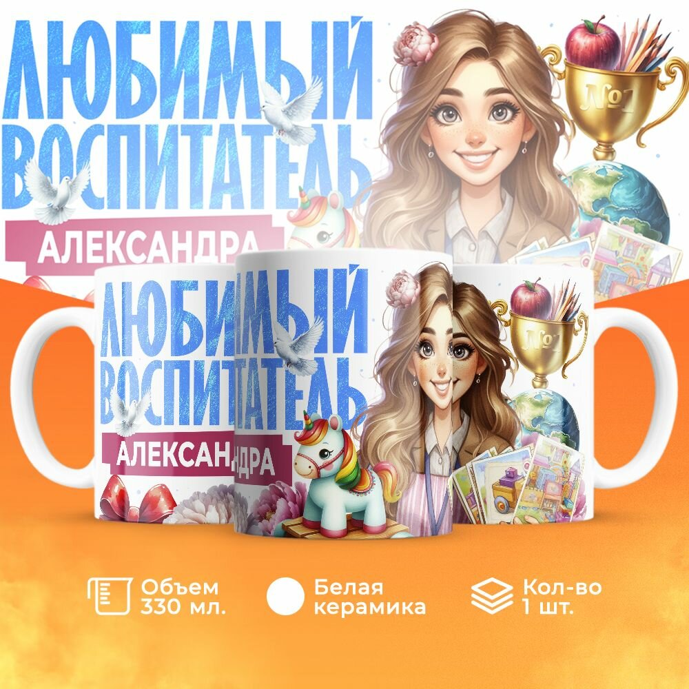 Купить Кружка, "Александра любимый воспитатель", на день воспитателя, в подарок в детский сад, работнику яслей или коллеги 330 мл