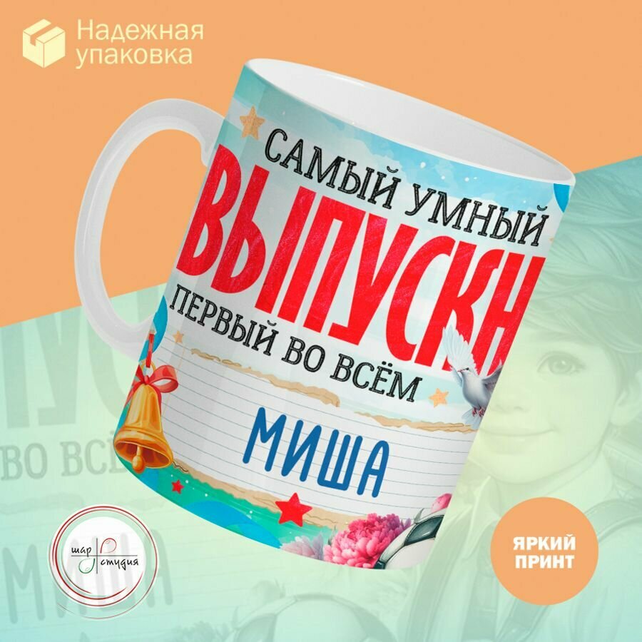 СохранитьКружка, "Самый умный выпускник первый во всем Миша", на выпускной из школы, в подарок для мальчика, сына, внука 330 мл интересное: