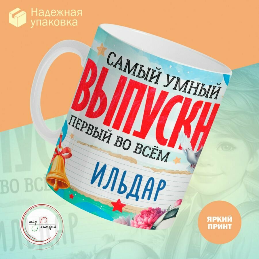 Купить Кружка, "Самый умный выпускник первый во всем Ильдар", на выпускной из школы, в подарок для мальчика, сына, внука 330 мл