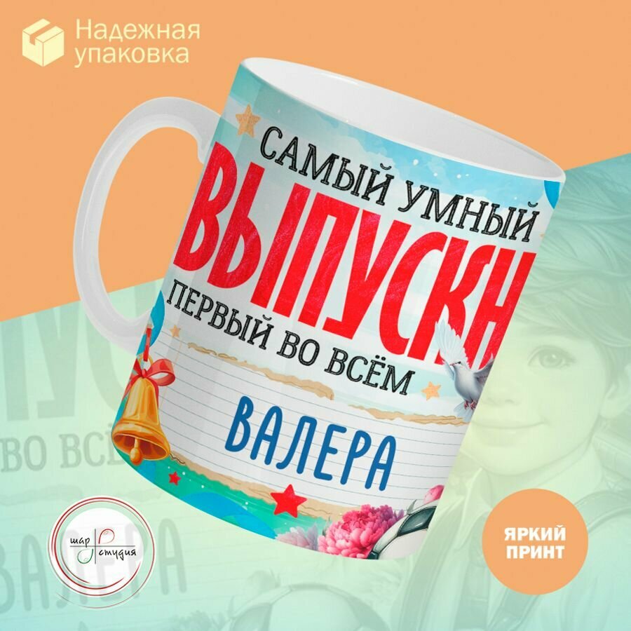 Кружка, "Самый умный выпускник первый во всем Валерий", на выпускной из школы, в подарок для мальчика, сына, внука 330 мл