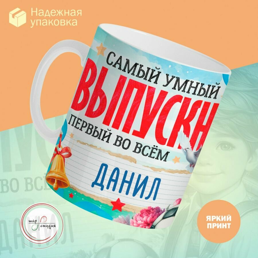 Кружка, "Самый умный выпускник первый во всем Данила", на выпускной из школы, в подарок для мальчика, сына, внука 330 мл