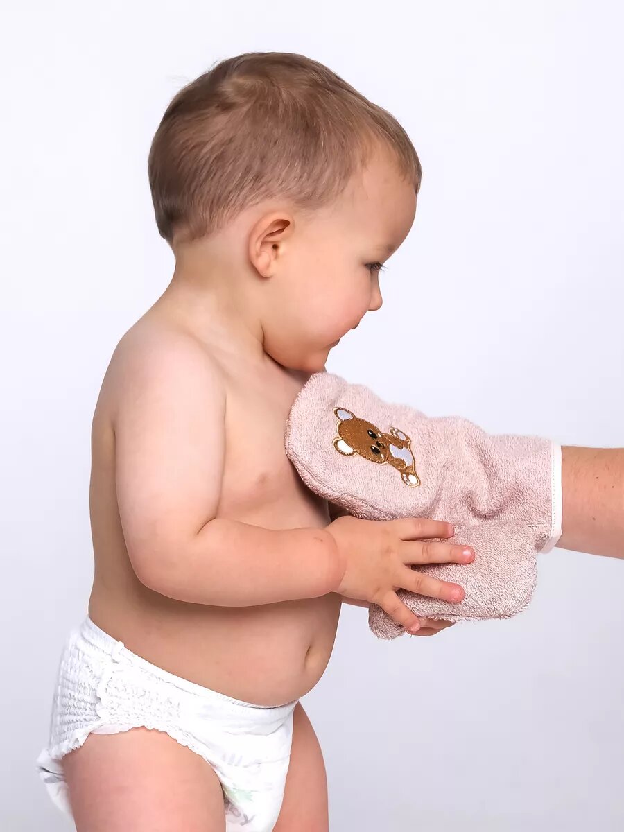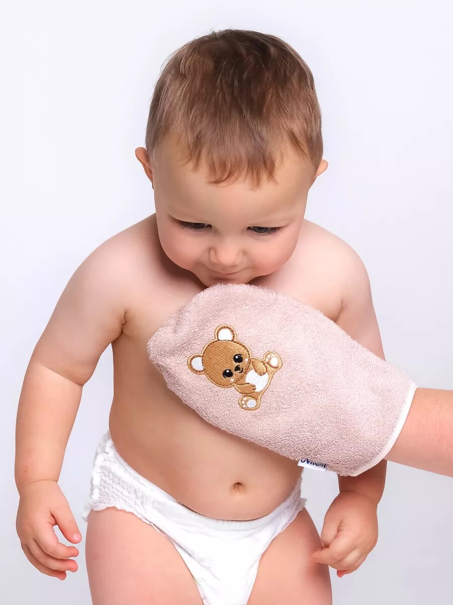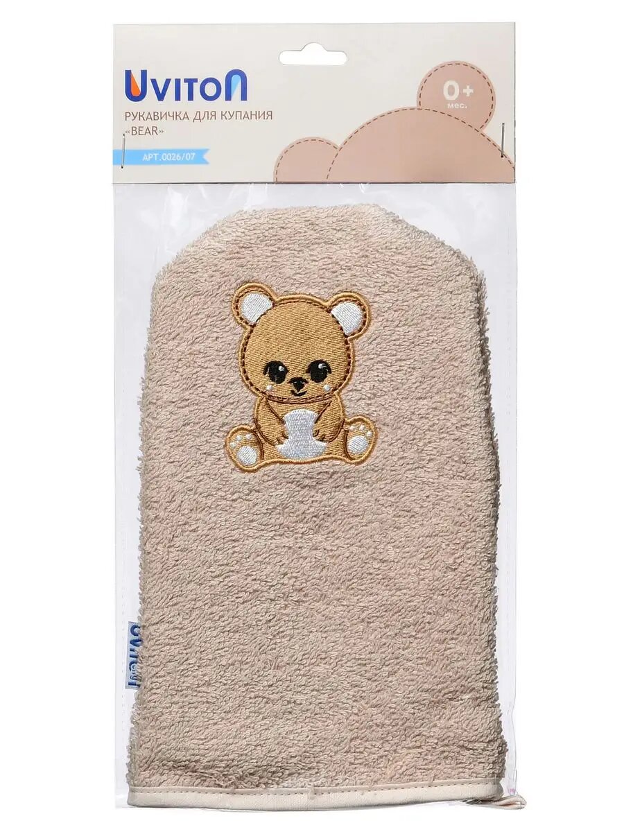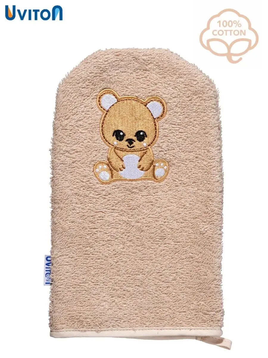 Мочалка детская рукавичка для новорожденных Bear от Uviton, хлопок интересное: