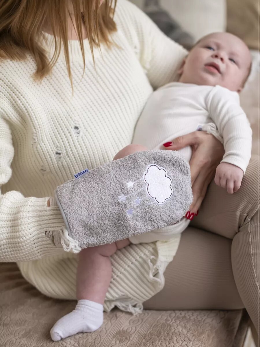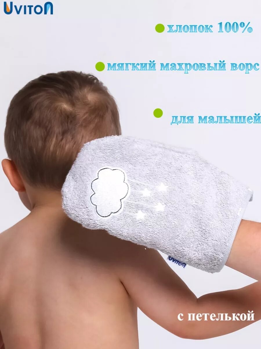 Мочалка для купания новорожденных Сlouds от Uviton, рукавичка интересное: