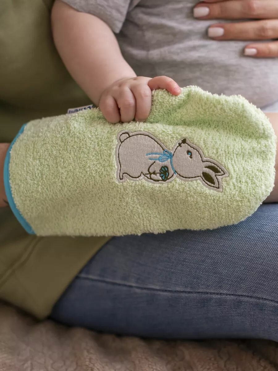 Мочалка детская рукавичка для новорожденных Bear от Uviton, хлопок
