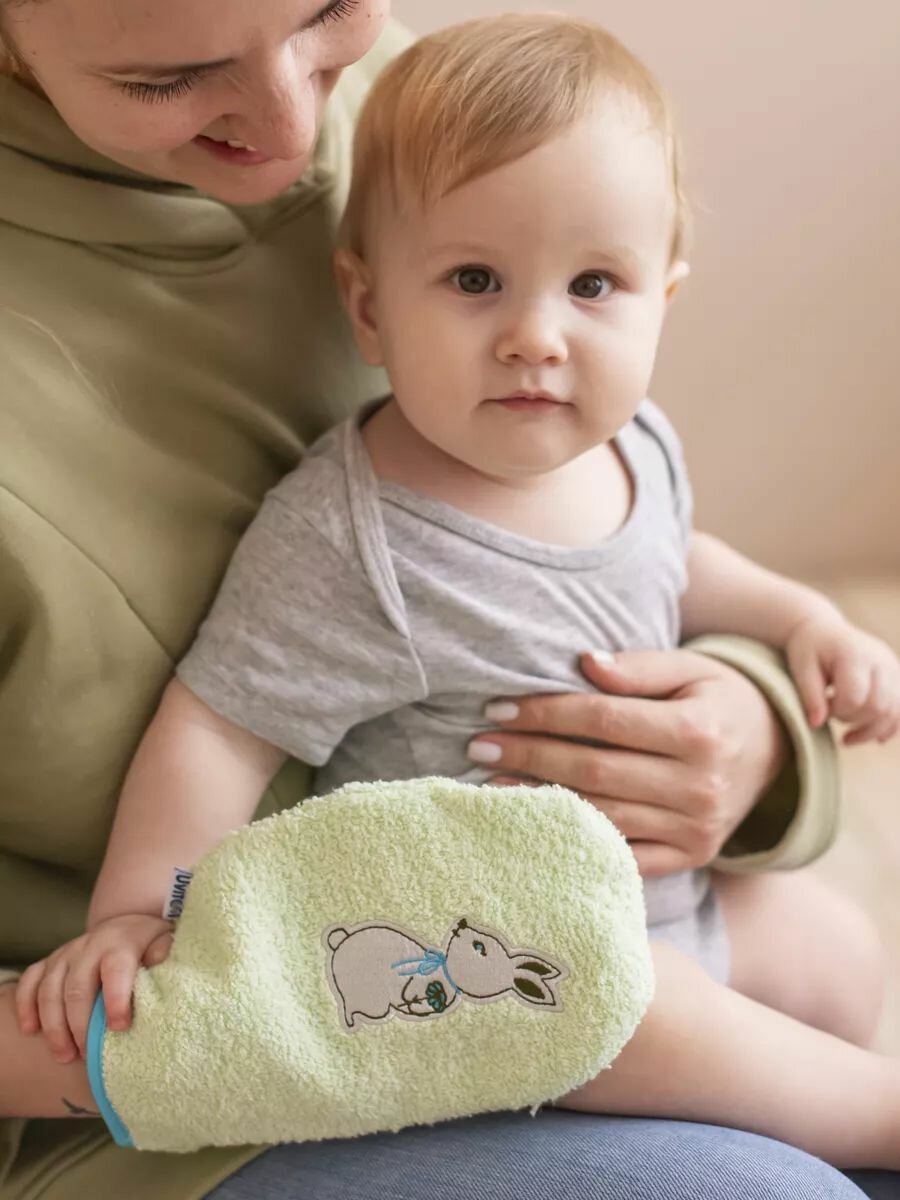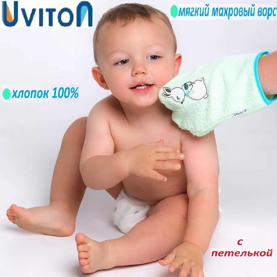 Купить Детская мочалка рукавичка от Uviton варежка для купания малышей 0+