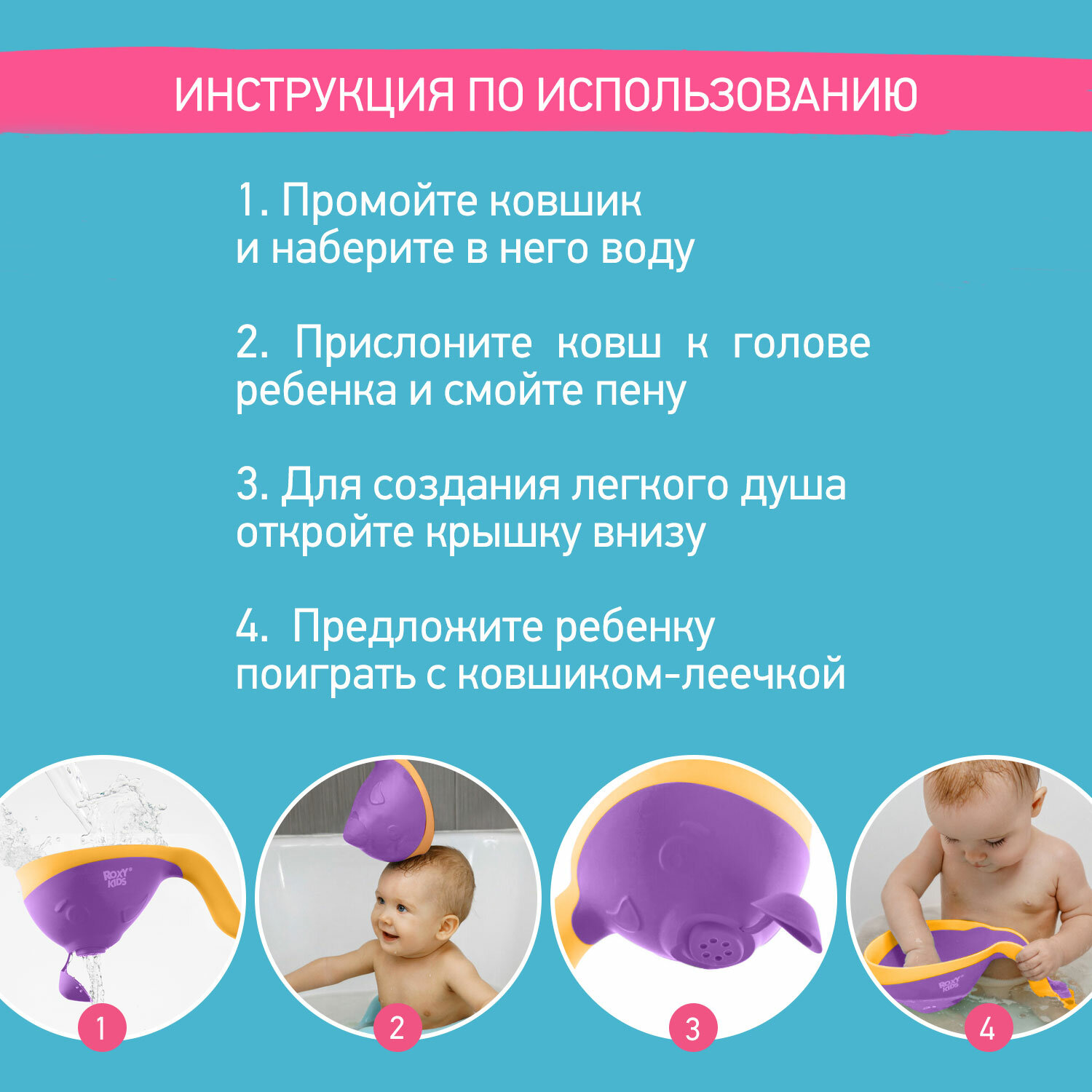 Ковш для ванны Flipper с лейкой от ROXY-KIDS. Фиолетовый интересное: