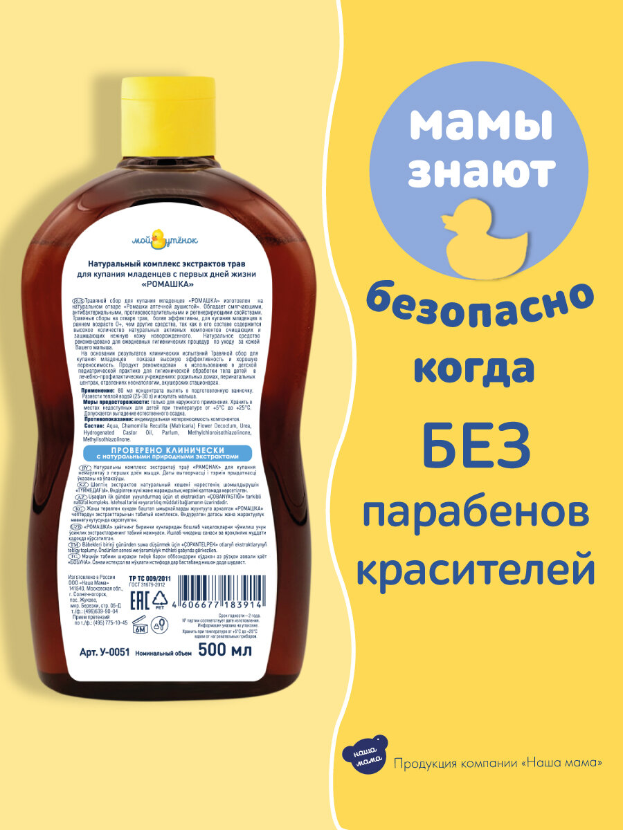 Мой Утенок Набор Натуральный комплекс экстрактов трав для купания младенцев с первых дней жизни «ромашка» 500 мл 2шт. интересное: