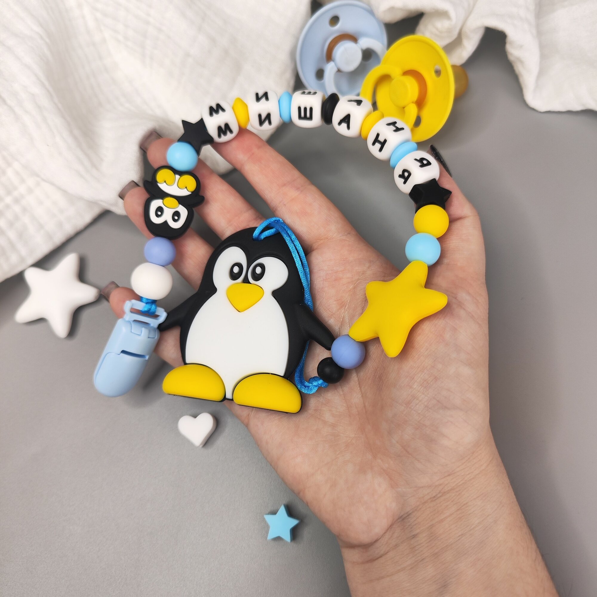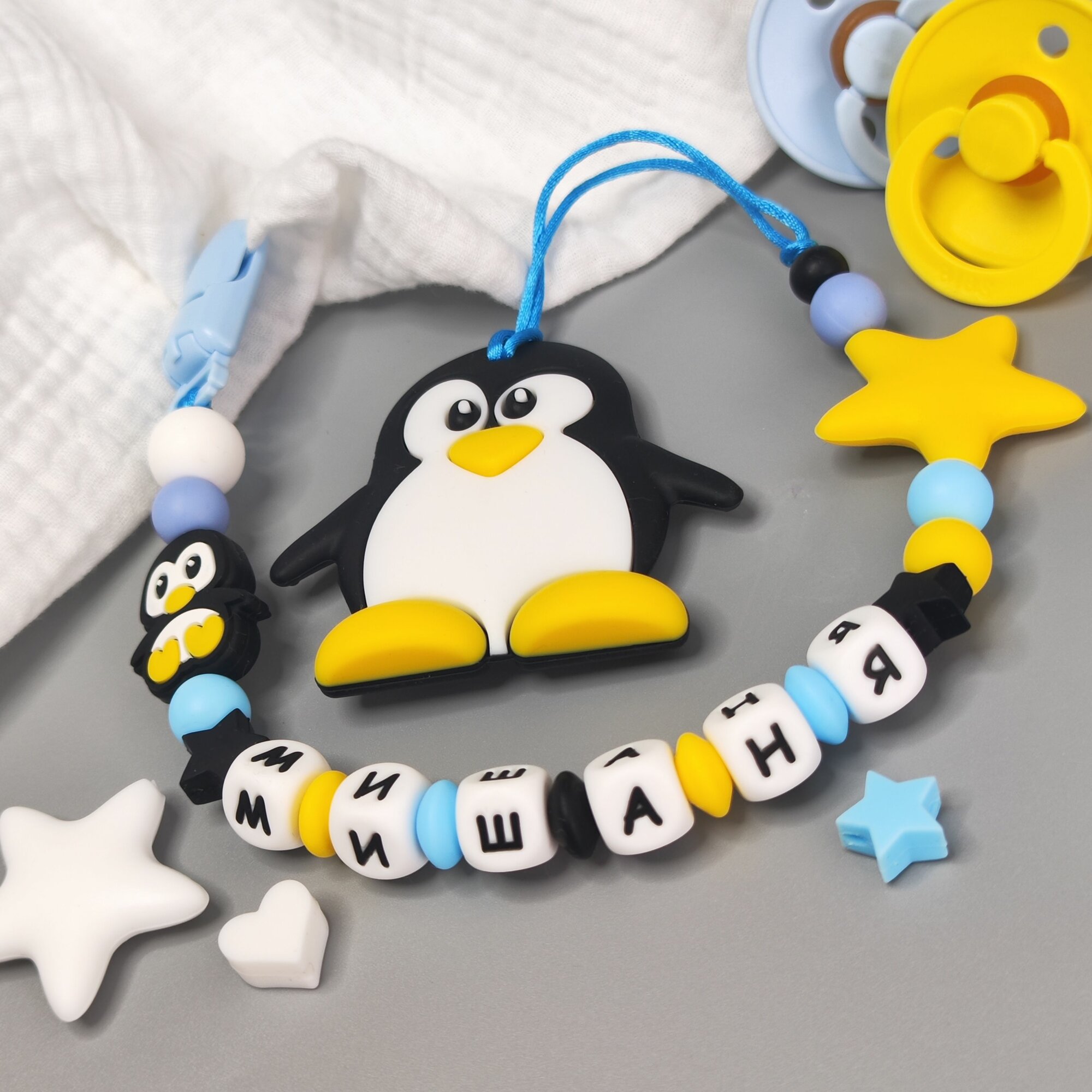 Именной силиконовый держатель для пустышки с грызунком - Михаил, Миша, Миша, Мишаня, Мишутка интересное: