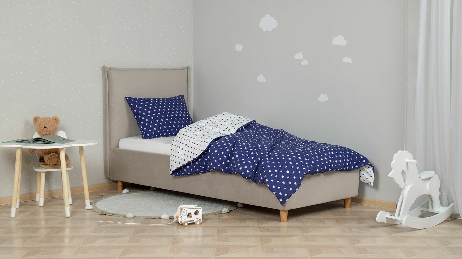 Постельное белье Askona kids (Аскона) Звезды серые (Stars gray) односпальный 140x205