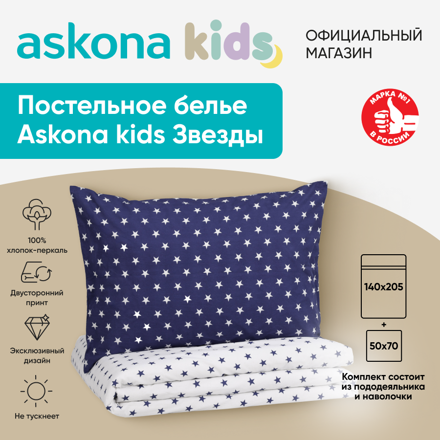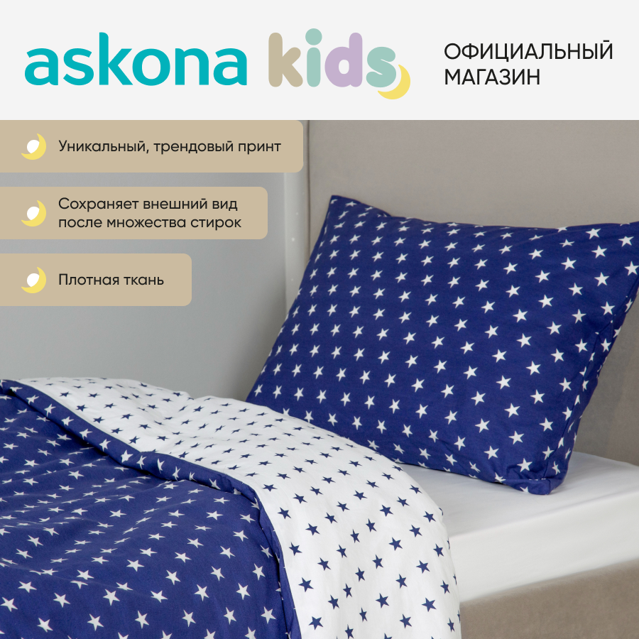 Постельное белье Askona kids (Аскона) Звезды синие (Stars blue) односпальный 140x205 интересное: