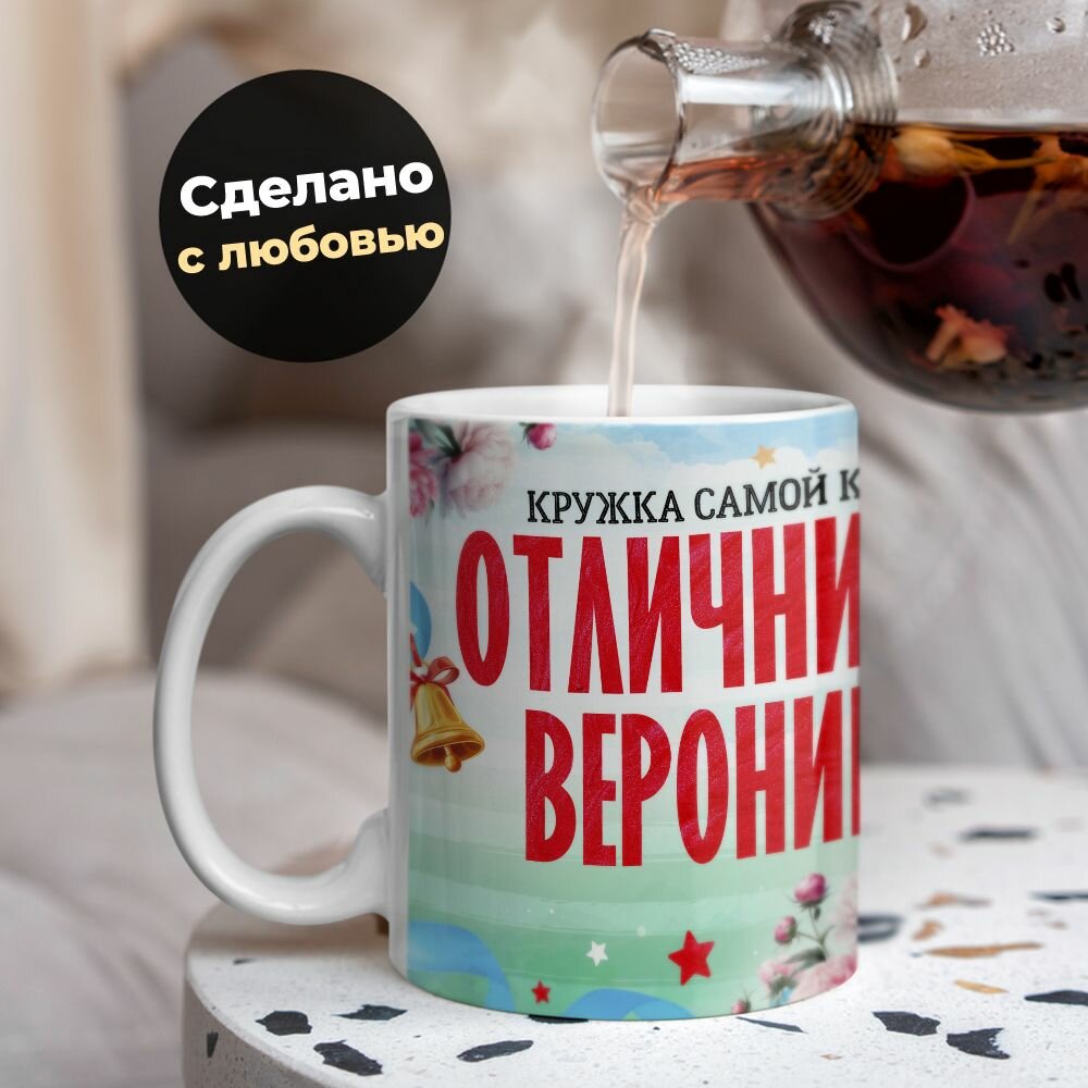 Купить Кружка, "Самой красивой отличницы Вероники", на день рождения дочки, в подарок для девочки, внучки с таблицей умножения 330 мл