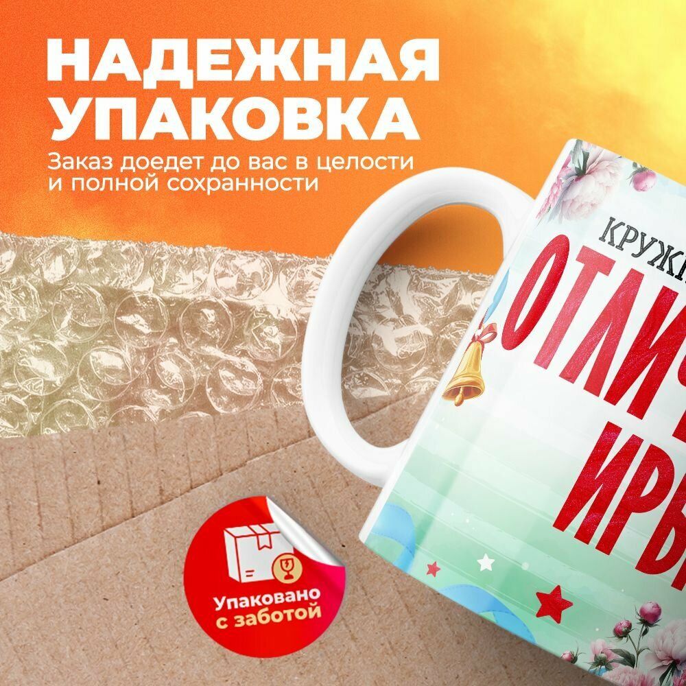 Кружка, "Самой красивой отличницы Ирини", на день рождения дочки, в подарок для девочки, внучки с таблицей умножения 330 мл