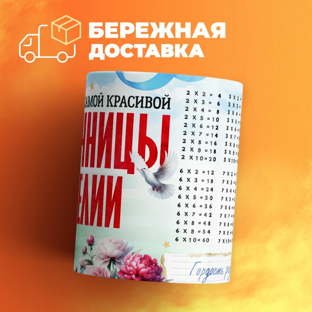 Кружка, "Самой красивой отличницы ", на день рождения дочки, в подарок для девочки, внучки с таблицей умножения 330 мл