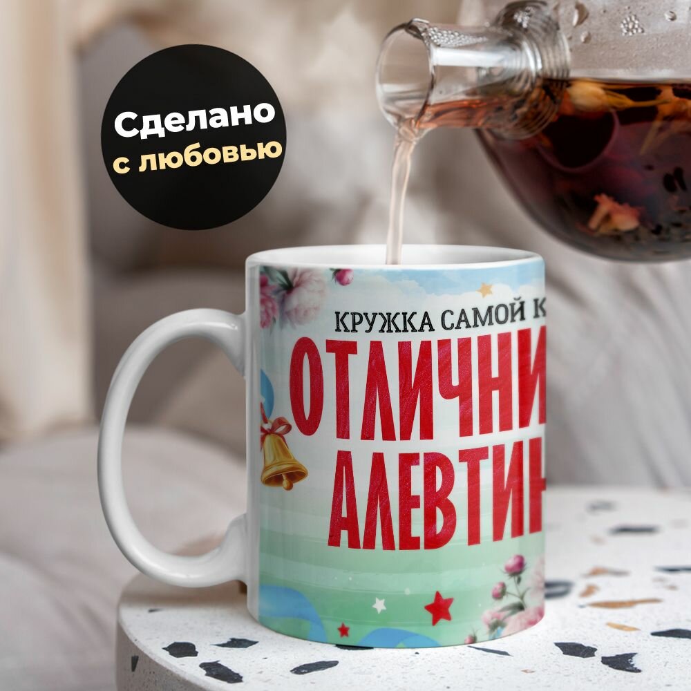 Купить Кружка, "Самой красивой отличницы Алевтины", на день рождения дочки, в подарок для девочки, внучки с таблицей умножения 330 мл
