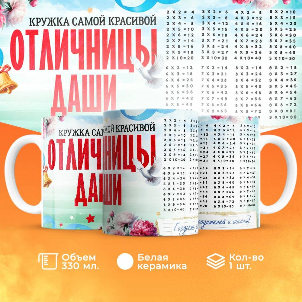 Купить Кружка, "Самой красивой отличницы Даши", на день рождения дочки, в подарок для девочки, внучки с таблицей умножения 330 мл