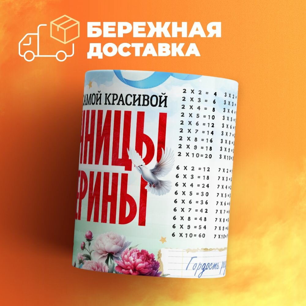 Купить Кружка, "Самой красивой отличницы Екатерины", на день рождения дочки, в подарок для девочки, внучки с таблицей умножения 330 мл