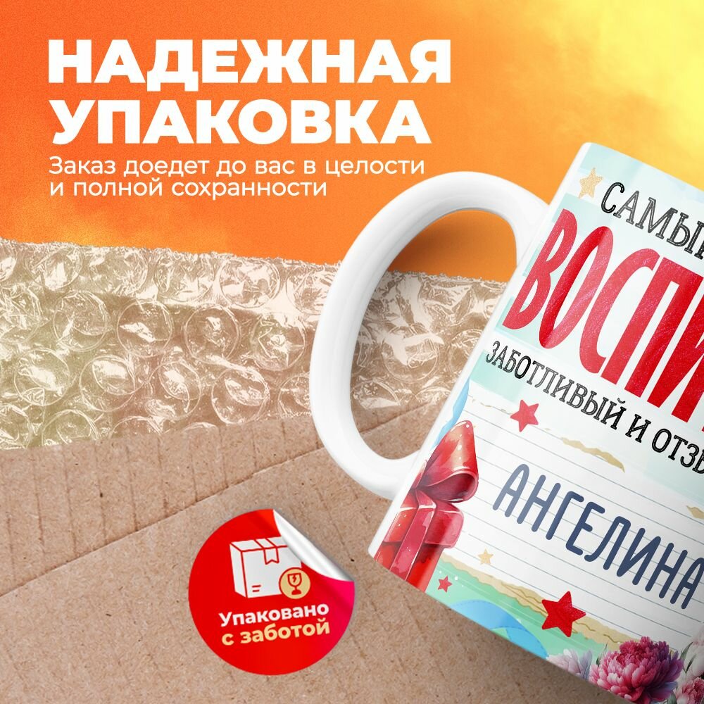 Купить Кружка, "Ангелина самый лучший воспитатель", на день воспитателя, в подарок для работника детского сада, преподавателя или коллеги 330 мл