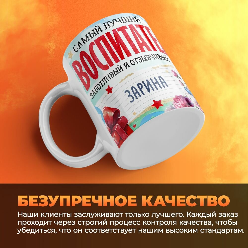 Купить Кружка, "Зарина самый лучший воспитатель", на день воспитателя, в подарок для работника детского сада, преподавателя или коллеги 330 мл