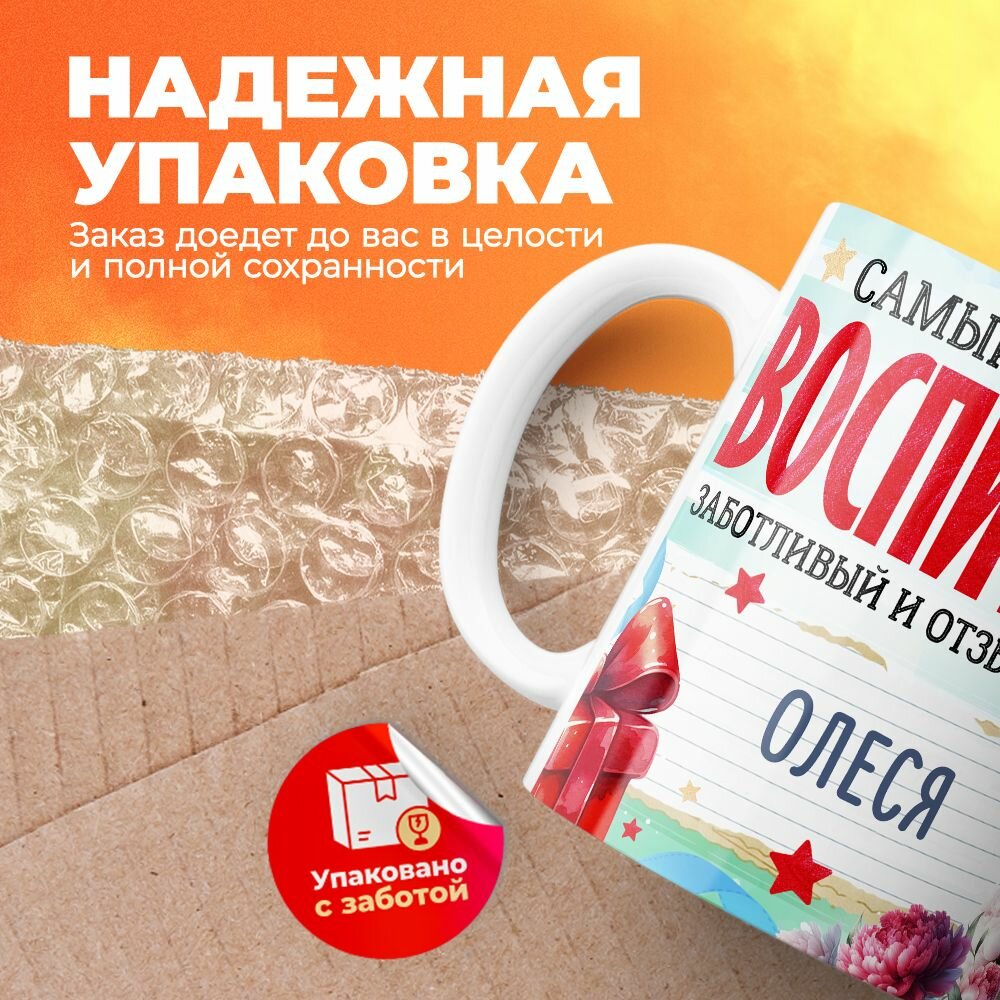Купить Кружка, "Олеся самый лучший воспитатель", на день воспитателя, в подарок для работника детского сада, преподавателя или коллеги 330 мл