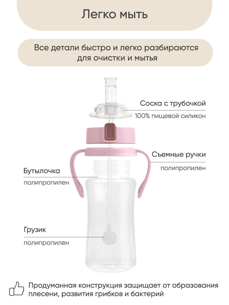 Поильник-непроливайка "Paomma", детский, с трубочкой и ручками, 300мл интересное: