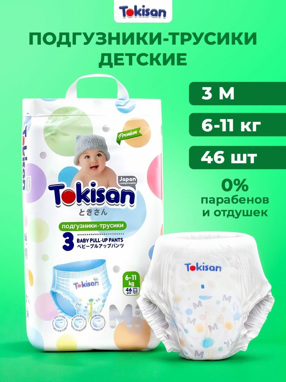 Дышащие подгузники трусики Tokisan японское качество, детские 6-11 кг, размер 3 M, 92 шт, дневные и ночные интересное: