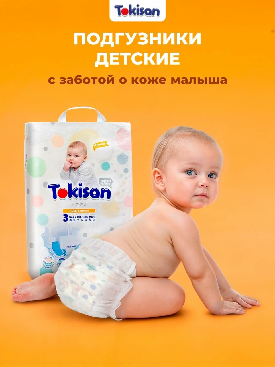 Подгузники трусики Tokisan 74 шт, японское качество, 3 размер M, 5-9 кг, детские, дневные и ночные интересное: