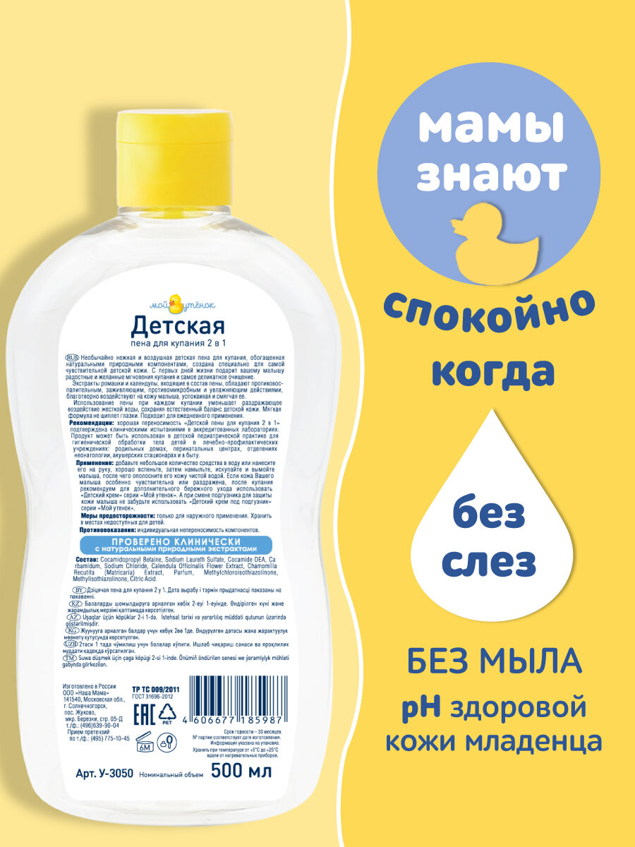 Мой Утенок Детская пена для купания 2 в 1 (тело, волосы), гипоаллергенно, с рождения, 500 мл интересное: