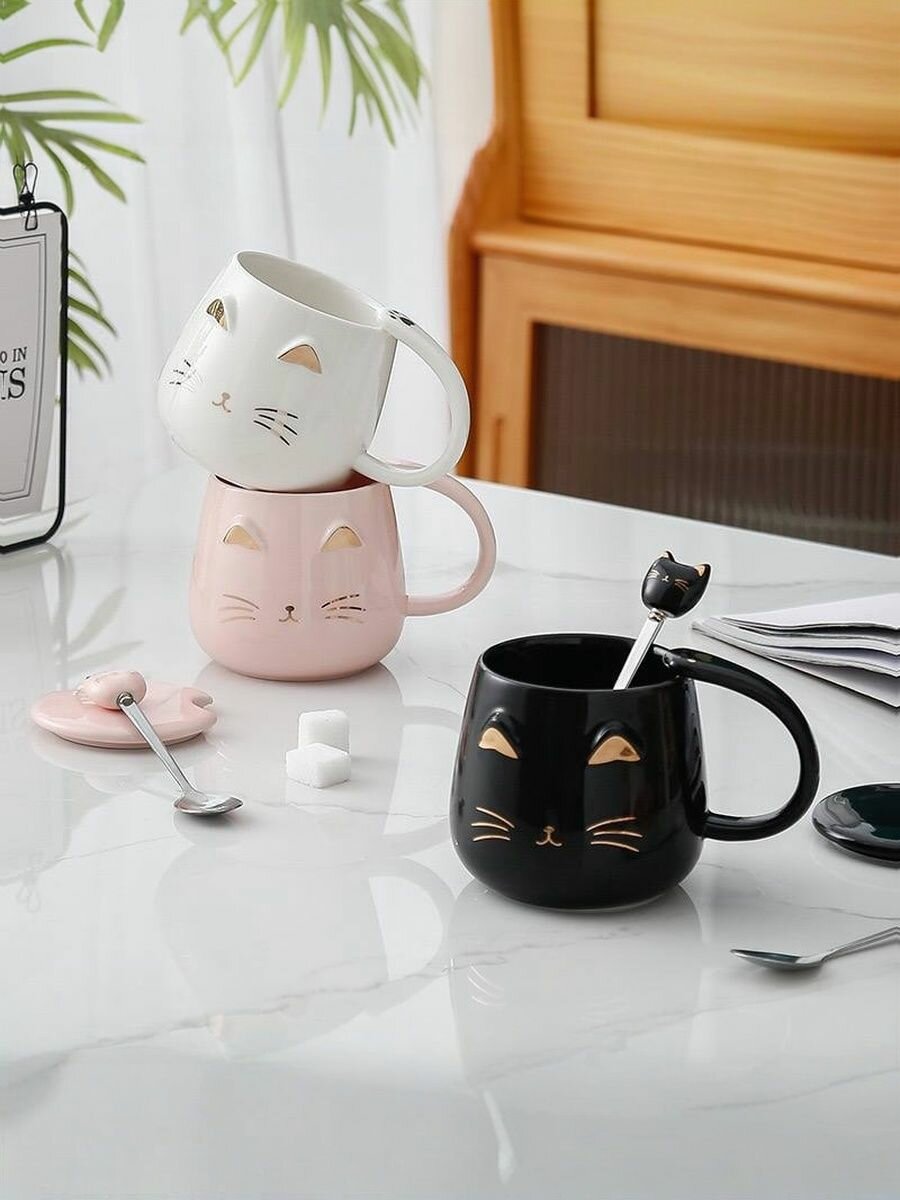 Кружка заварочная, в подарок, 370 мл, котик с крышкой и ложкой, в коробке интересное: