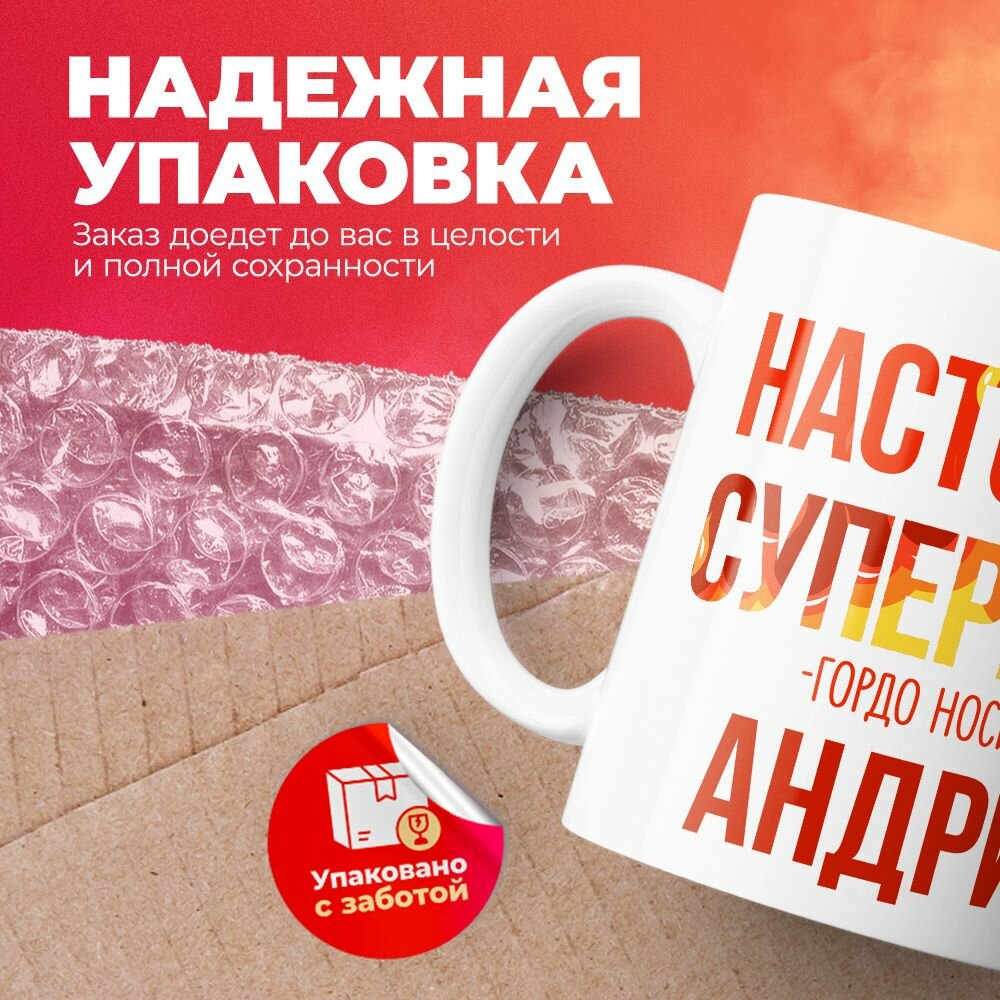 Кружка 330мл, МЧС, Спасателю, Настоящий супергерой, с именем Андрей
