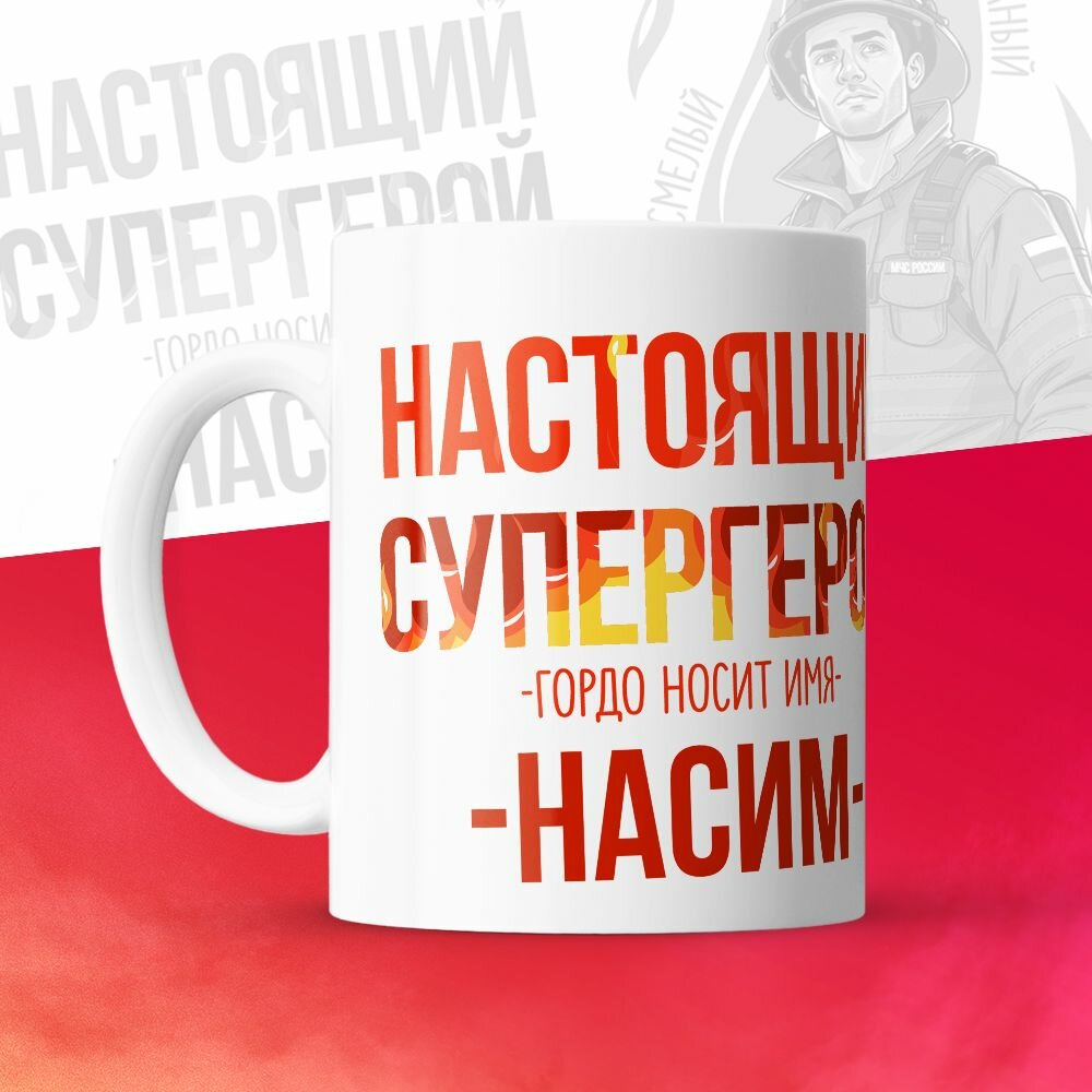 Купить Кружка 330мл, МЧС, Спасателю, Настоящий супергерой, с именем Насим