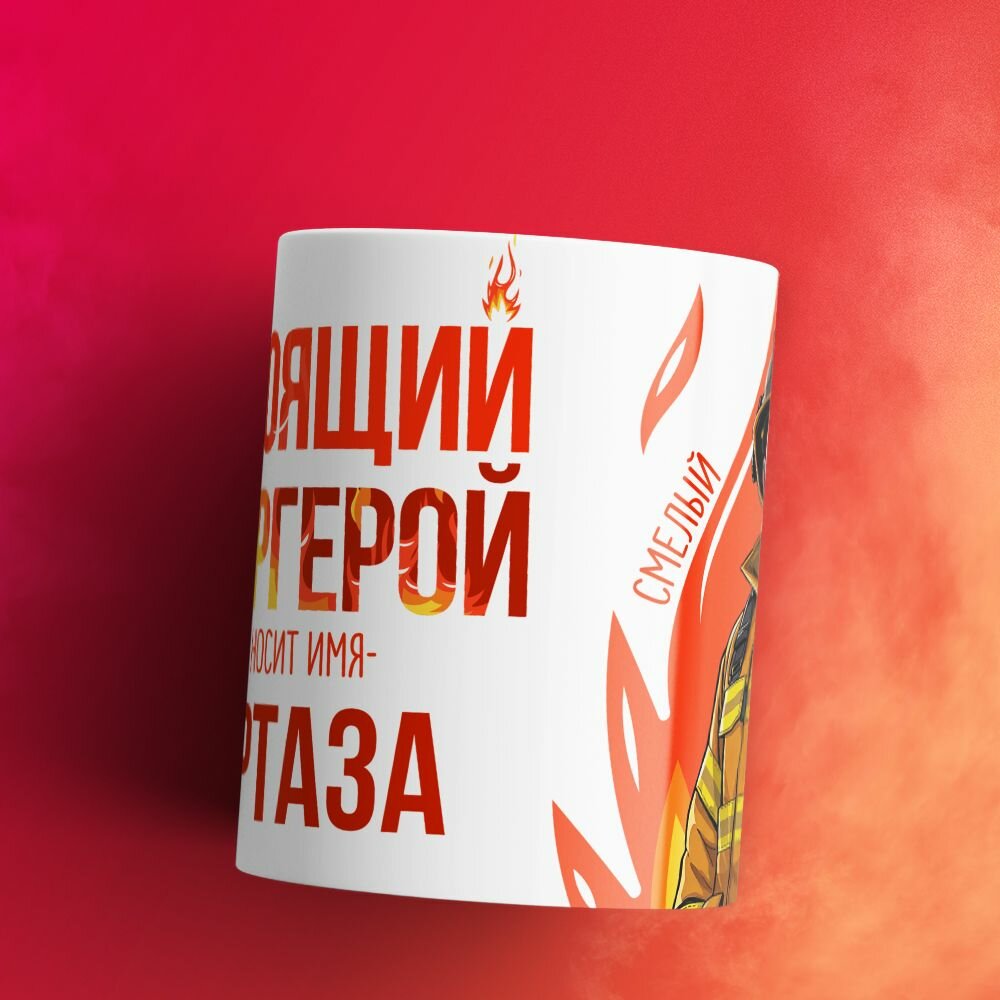 Кружка 330мл, МЧС, Спасателю, Настоящий супергерой, с именем Самат