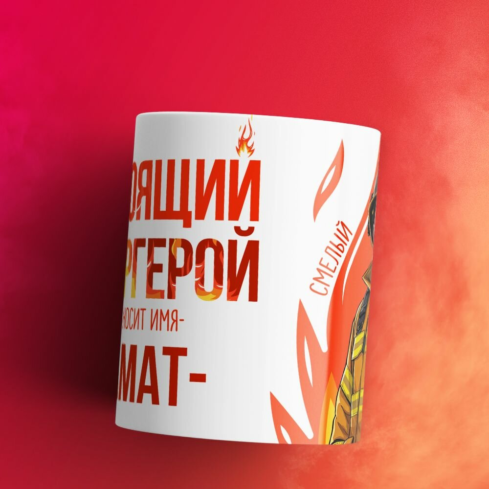 Кружка 330мл, МЧС, Спасателю, Настоящий супергерой, с именем Мухаммад