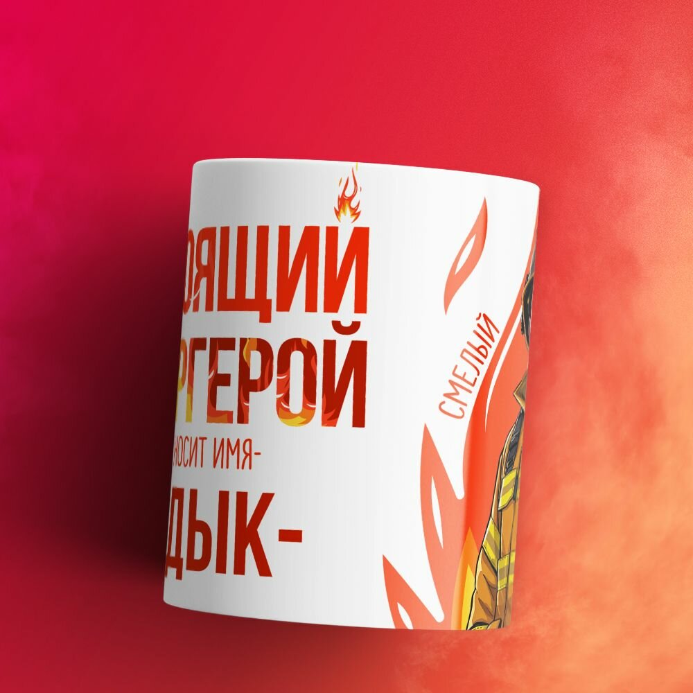 Кружка 330мл, МЧС, Спасателю, Настоящий супергерой, с именем Мухаммад