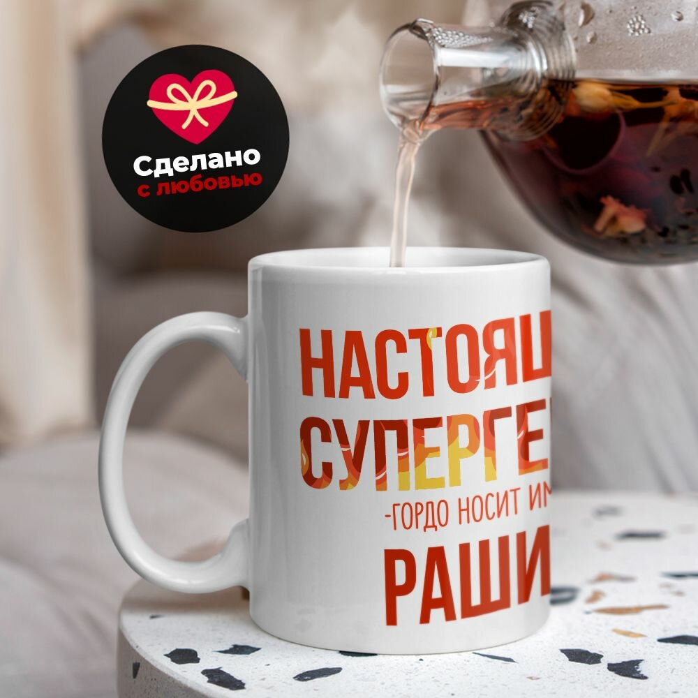 Кружка 330мл, МЧС, Спасателю, Настоящий супергерой, с именем Рашид