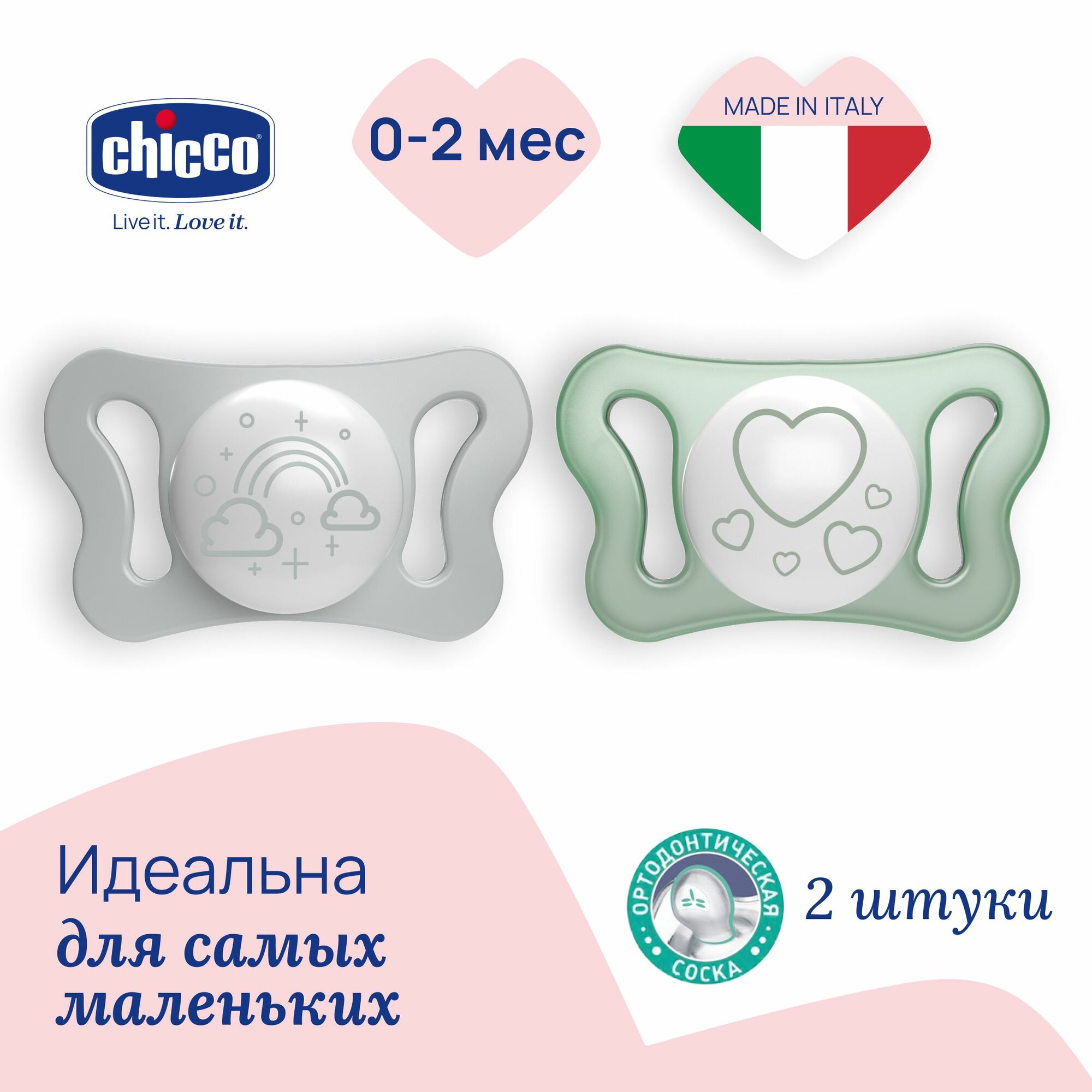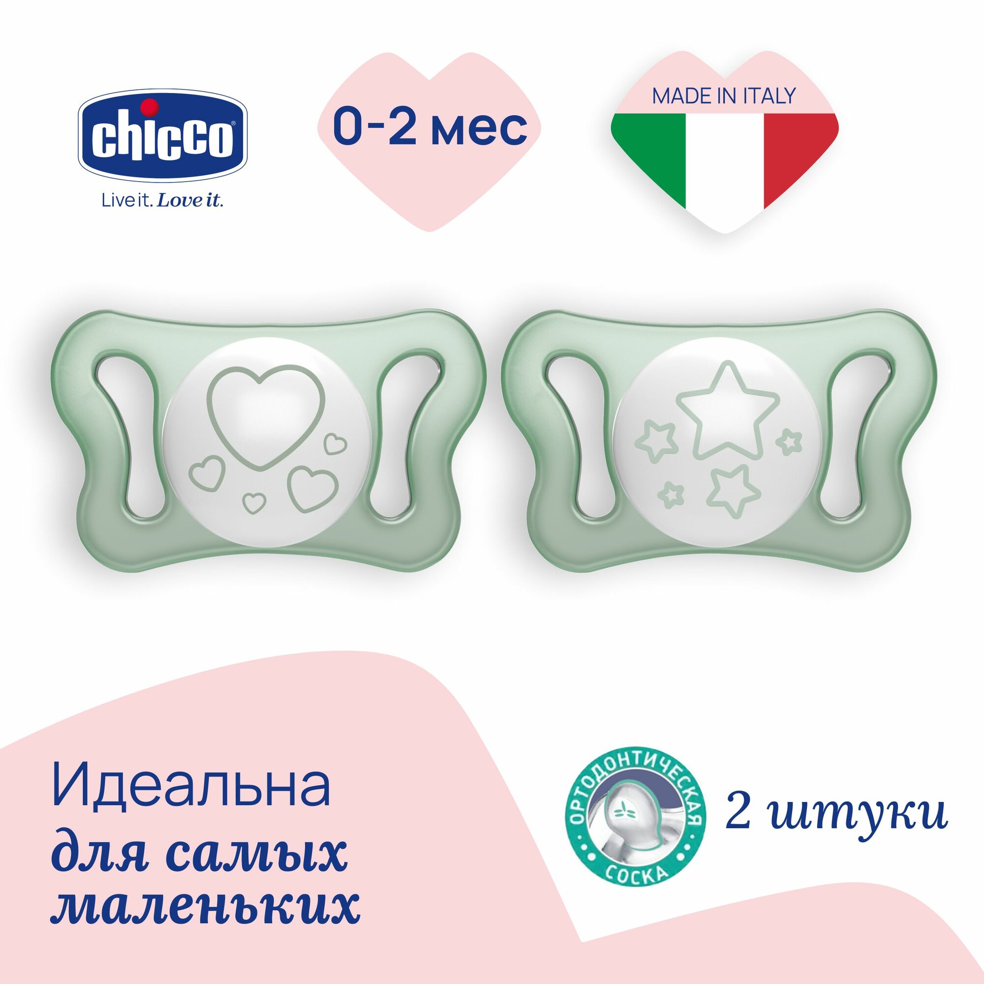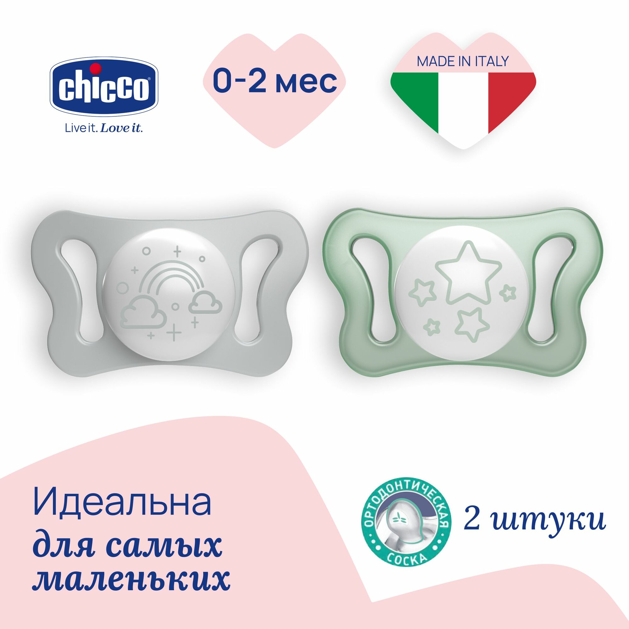 Соска пустышка для новорожденных 0-2 мес Chicco Утешение Physioforma Micro 2 шт, Розовый