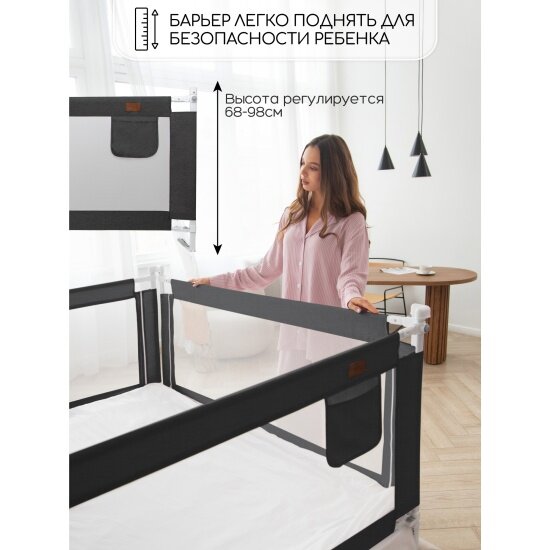 Барьер защитный для кровати Amarobaby Linear, черный, 200 см.