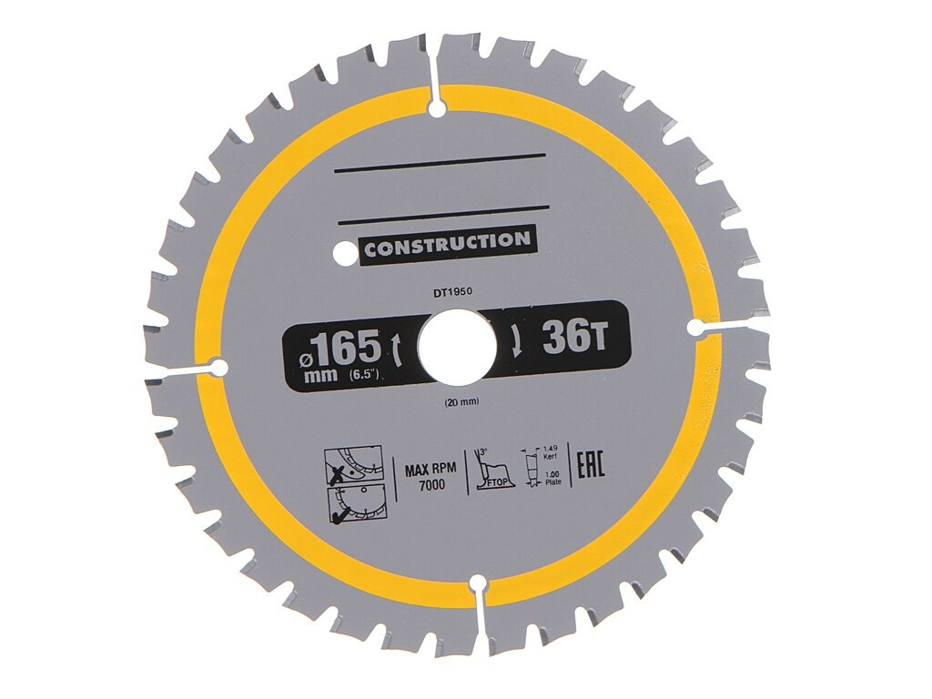 Пильный диск DEWALT DT1950, CONSTRUCTION по дереву с гвоздями 165/20, 36 FTG +3°