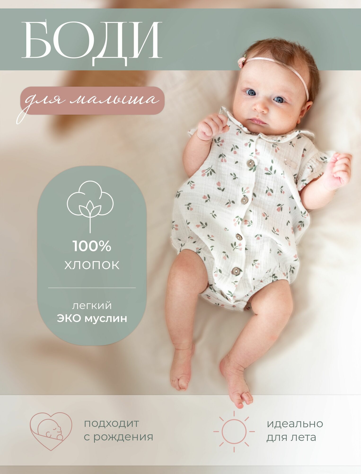 Боди Наследникъ Выжанова Малышам, размер 56-62, цветы
