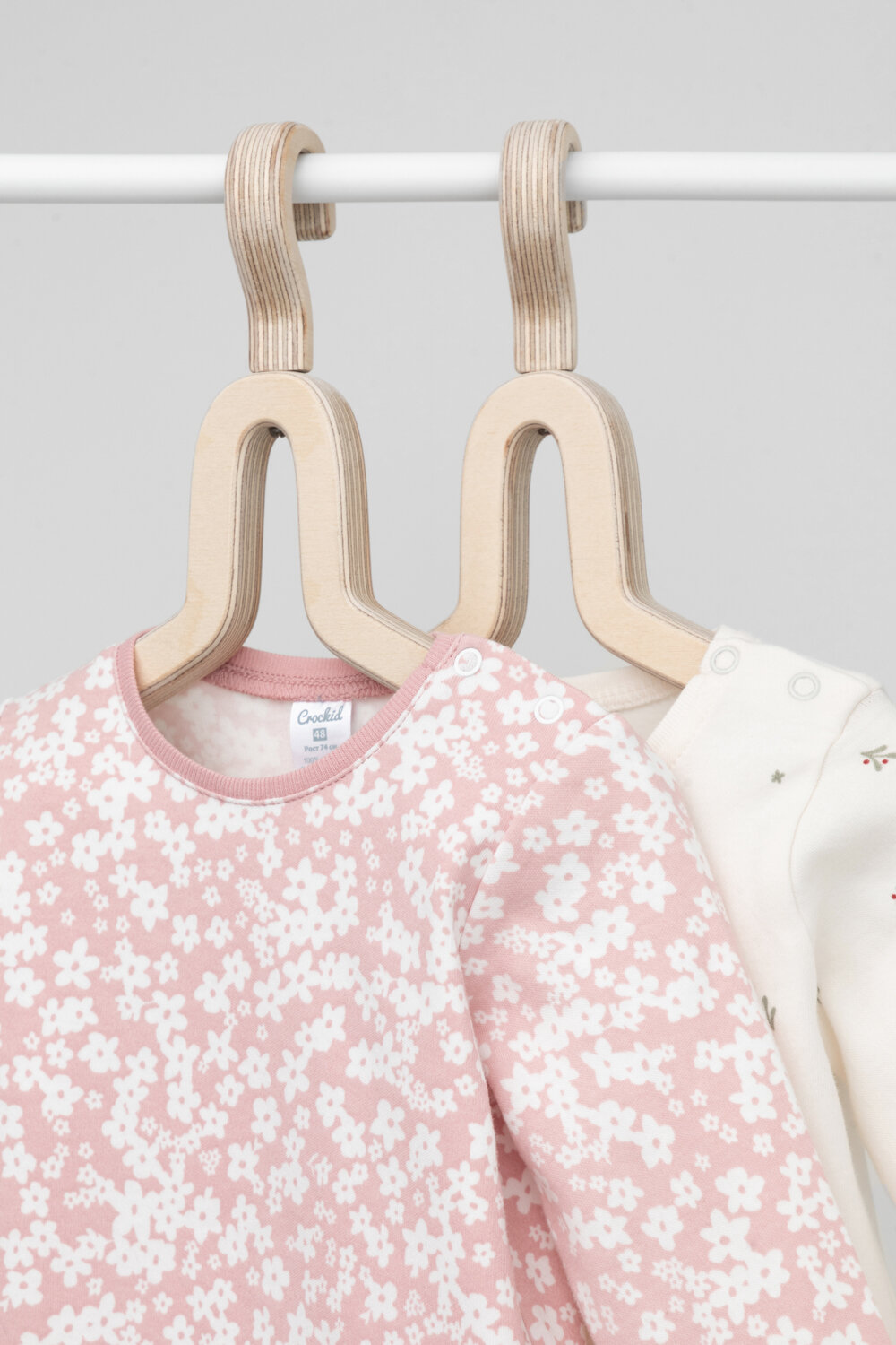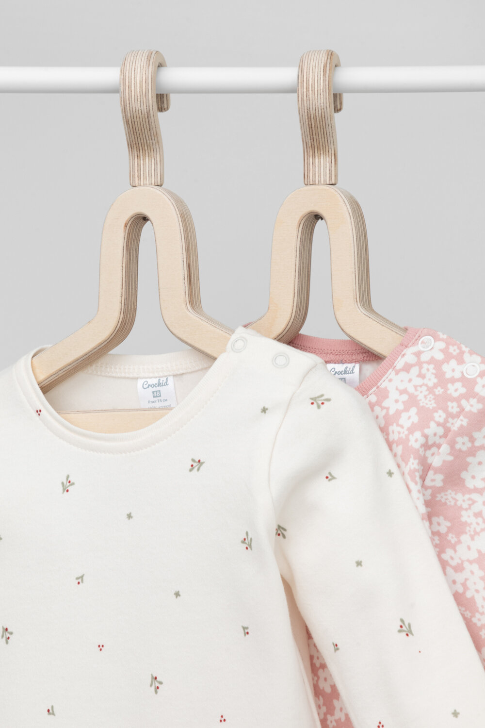 Боди crockid К 6342-2уп/цветочные снежинки,зайчики, комплект из 2 шт., размер 48/74, розовый