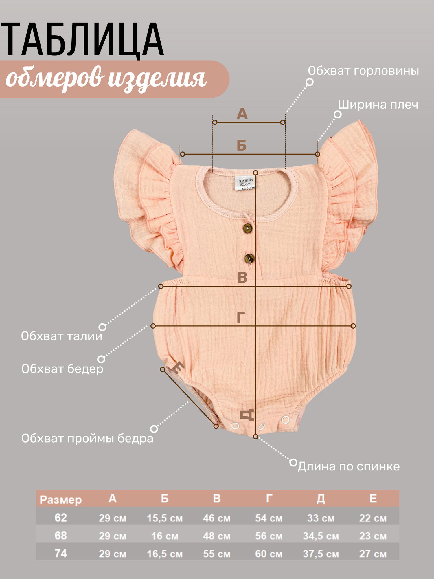 Боди Clariss Весна-лето 2024, размер 22 (68-74) 3-6 мес., серо-голубой