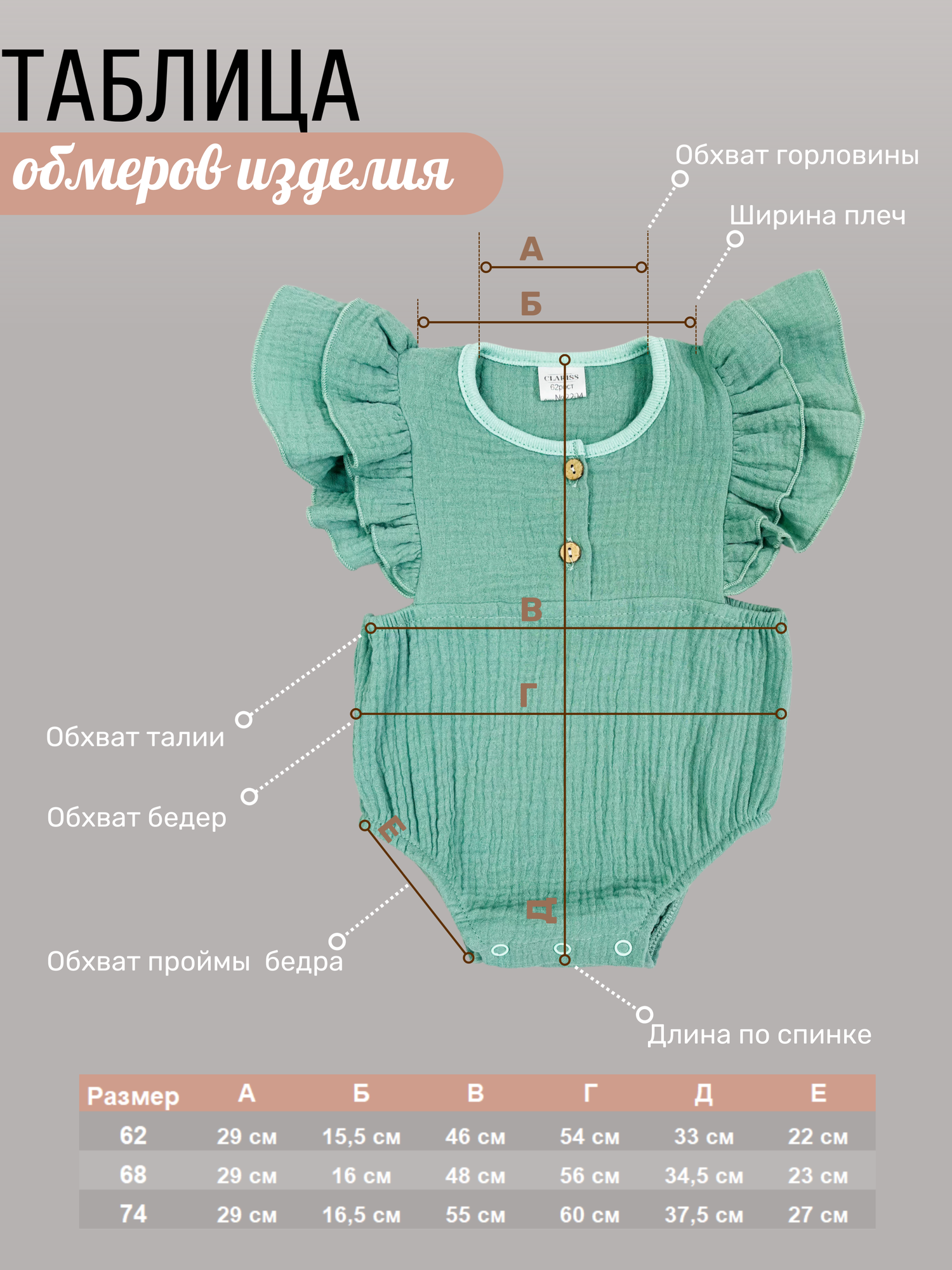 СохранитьБоди Clariss Весна-лето 2024, размер 24 (74-80) 6-9 мес., зелeный интересное: