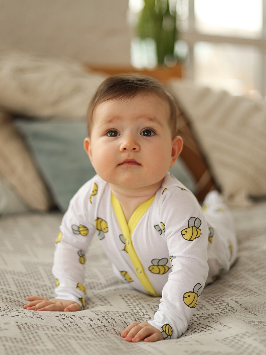 Боди funny bee, размер 74-80, белый/желтый