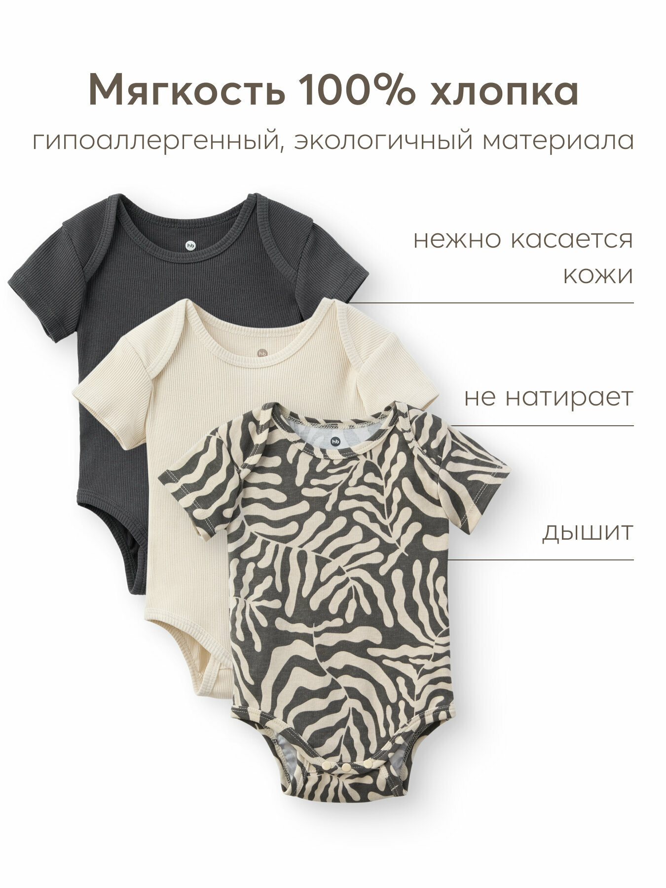 Боди Happy Baby Базовая коллекция, комплект из 3 шт., размер 68, черный, белый, серый