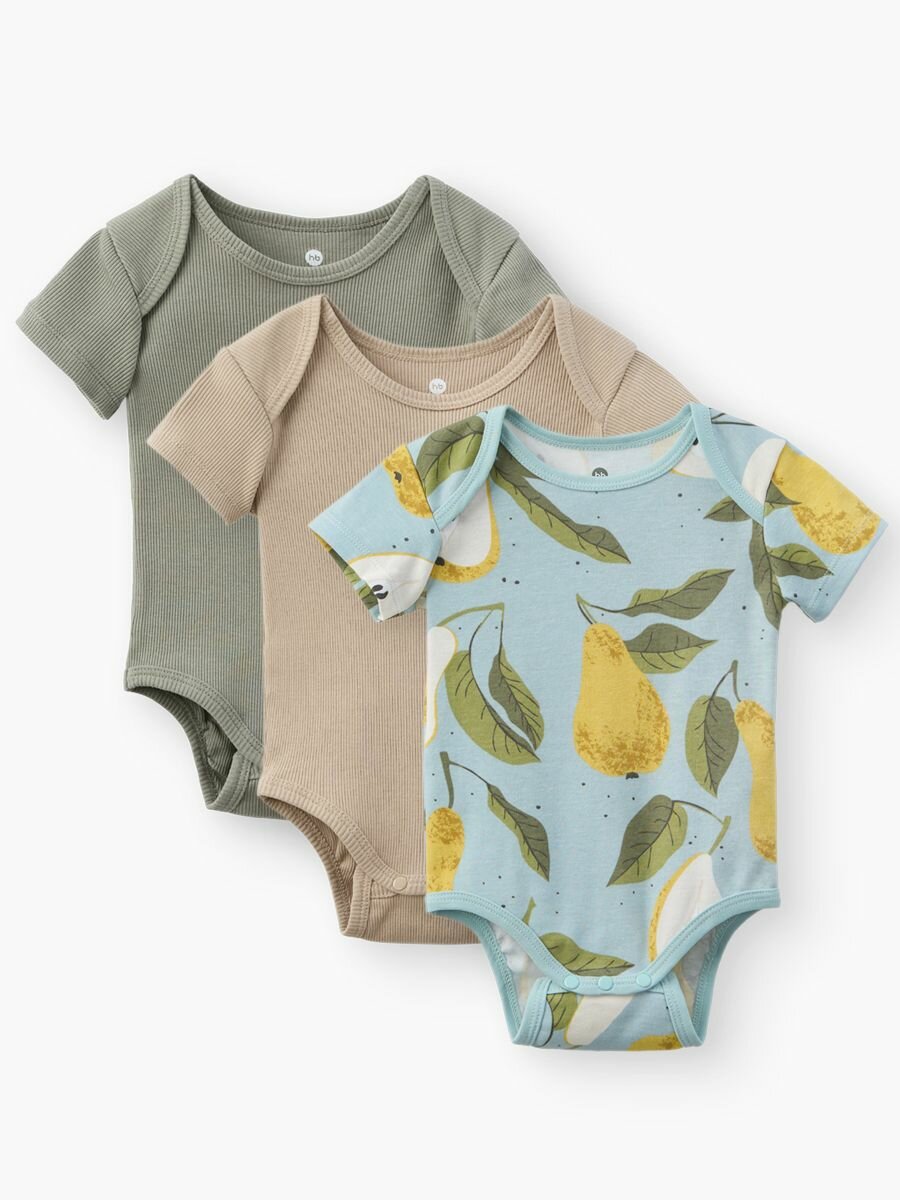 Боди Happy Baby Базовая коллекция, комплект из 3 шт., размер 74, груша