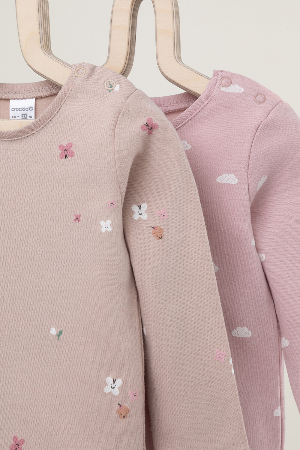 Купить Боди crockid К 6342-2уп/пикник на полянке,облачка, комплект из 2 шт., размер 52/80, бежевый, розовый