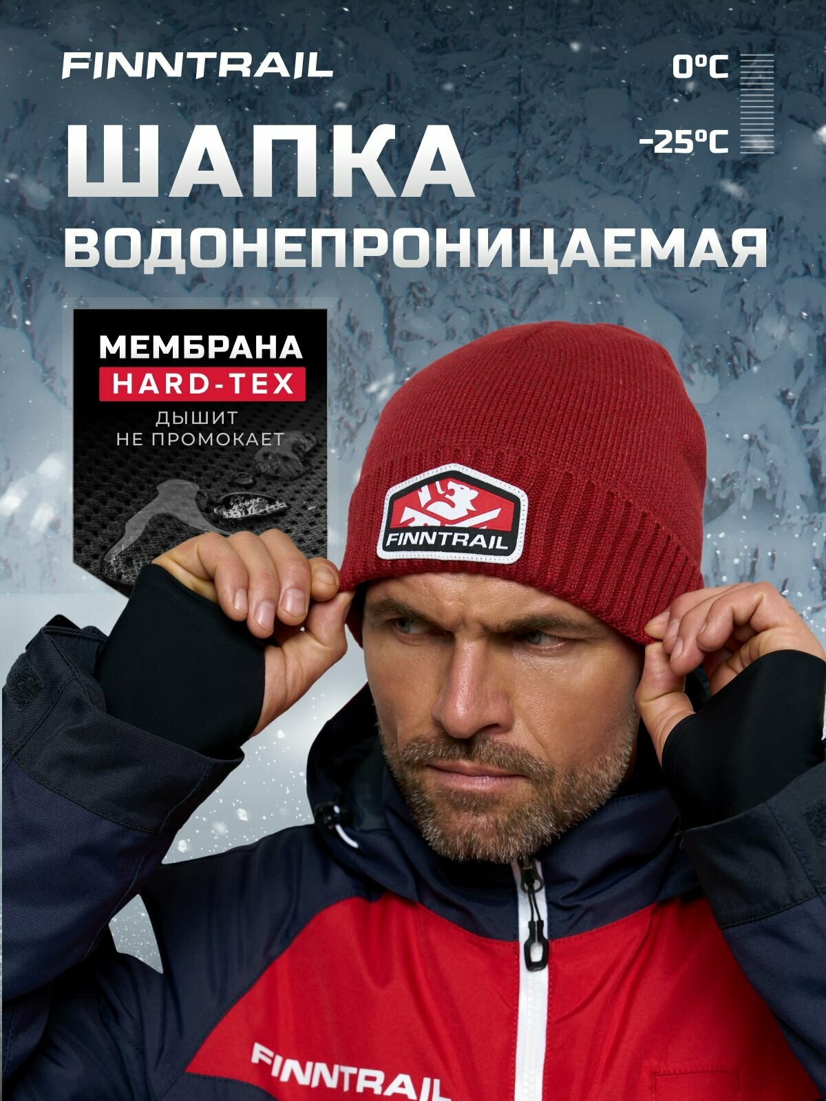 Купить Шапка-бини Finntrail Waterproof Hat для мужчин, размер M/L, красный