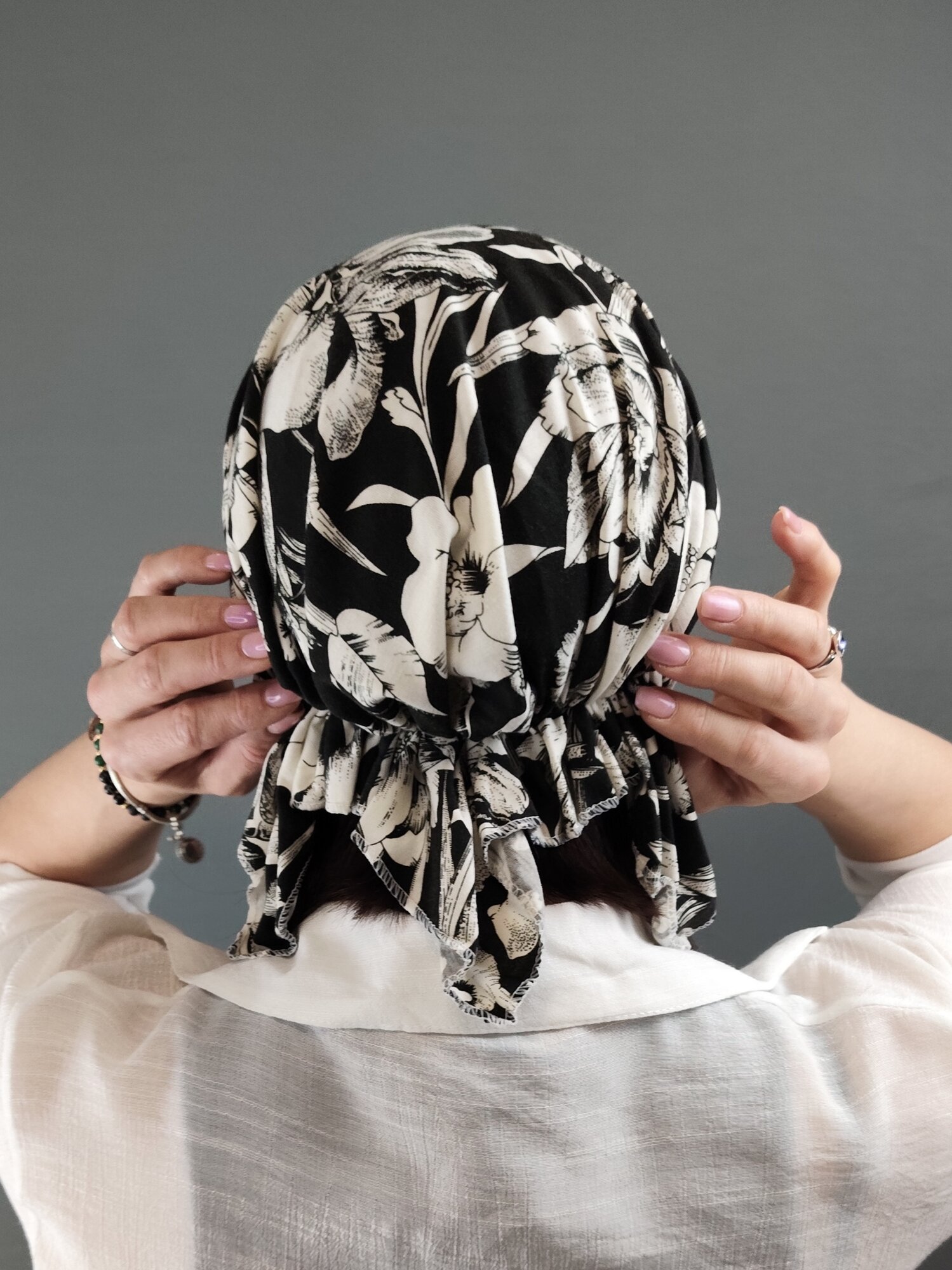 Бандана для взрослых и детей, размер 56-58, белая принт цветы и листья