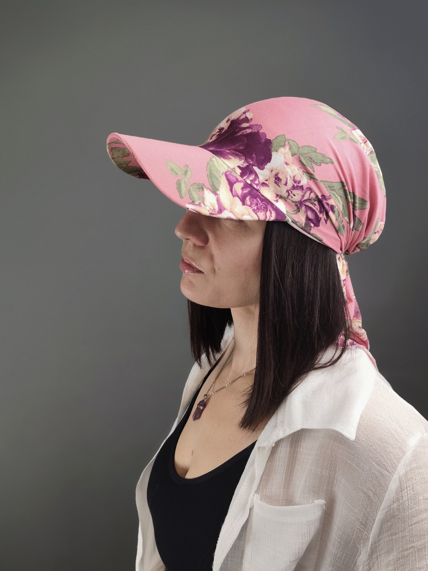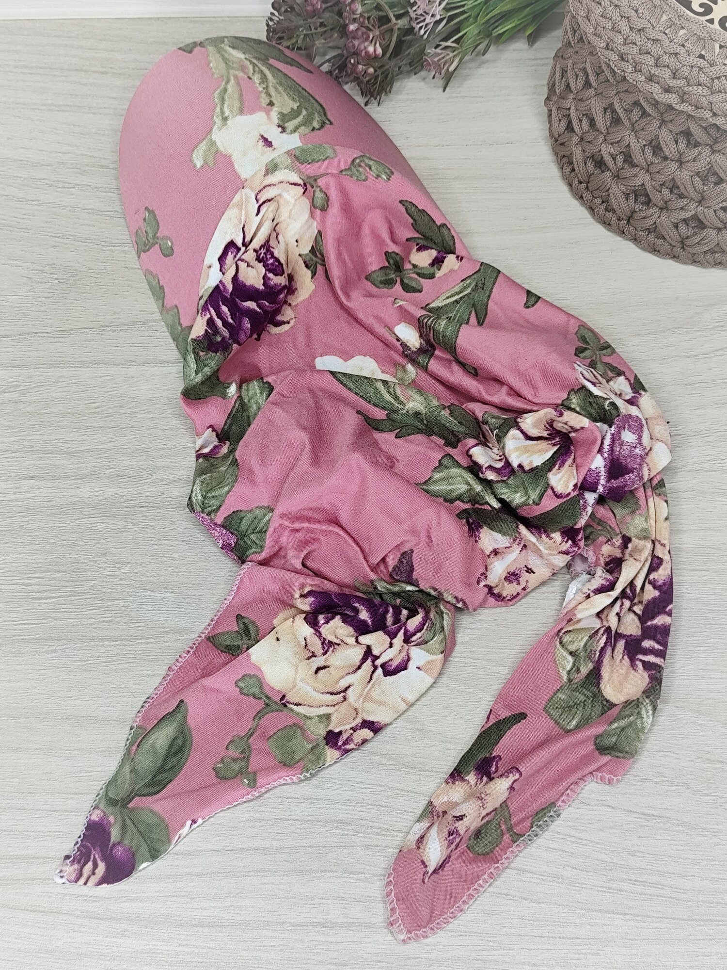 Бандана для взрослых и детей, размер 56-58, розово-синий принт цветы