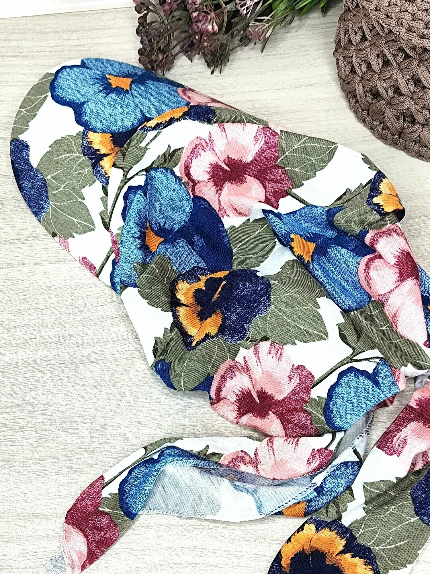 Бандана для взрослых и детей, размер 56-58, розово-синий принт цветы